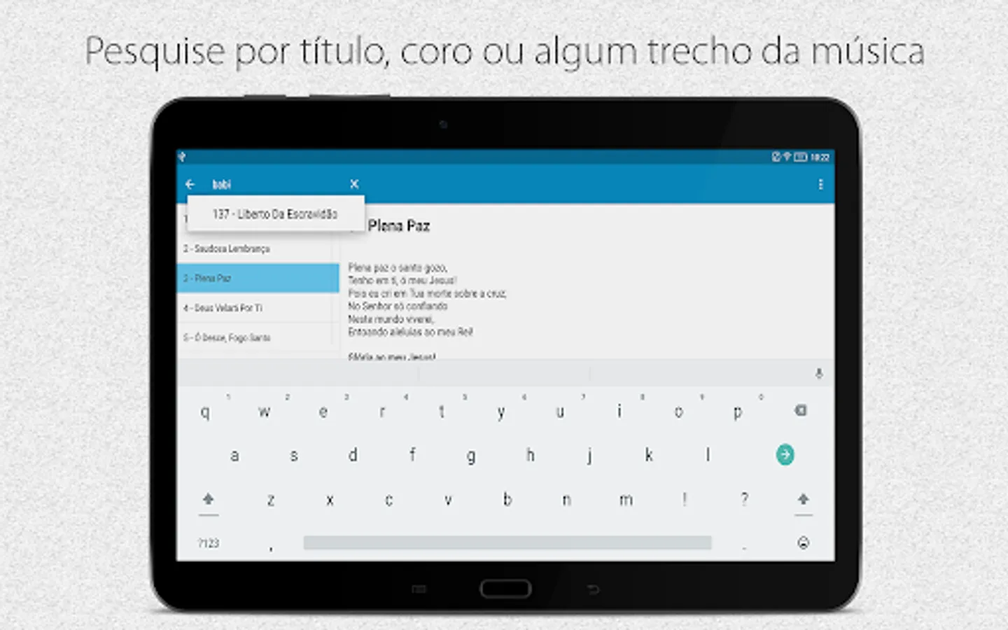 Smart search: you don't need to know the number, name or chorus of the hymn; just type any excerpt and the search will be done.