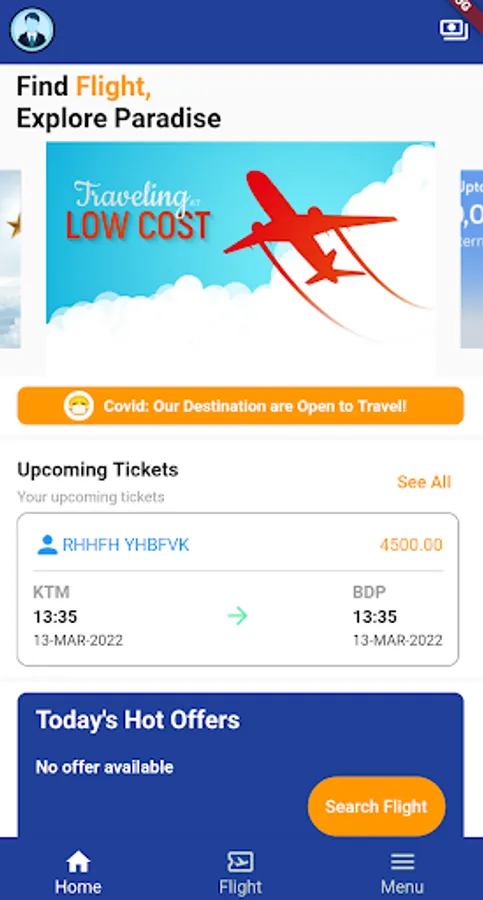 The leading domestic ticket booking application in Nepal offers daily flight to many destinations. Also along with Offers in collaboration with Airlines of Nepal.