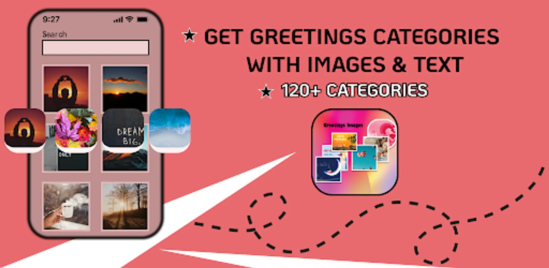 - different categories such as Festival wishes, Daily Wishes and many more.