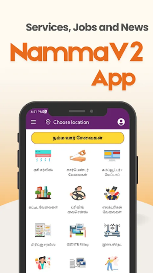 Nammav2app is an information platform providing a collection of services, news, private job listings across Tamil Nadu, and government job listings across India. We source the job listings from various entities and present them in a consolidated form for our users' convenience.