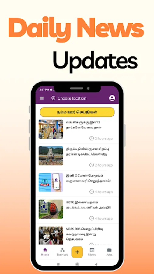 Namma V2 App to get all services, government and private jobs in Tamilnadu, latest headlines & public updates, local updates, political, entertainment, crime, technology & international alerts in your language. Stay connected with your community by sharing your views & updates online daily.
