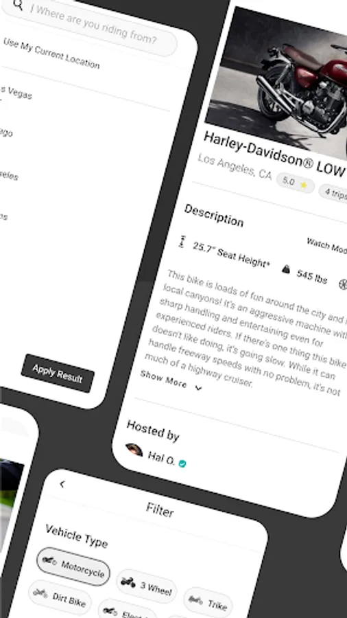 EagleShare rental customers can browse the site and make reservations knowing that all hosts and vehicles have also undergone a comprehensive screening and review process to ensure they can expect the same level of quality and service they have enjoyed with our sister company EagleRider. The only difference? Customers now have access to a larger variety of custom motorcycles like Indians, Slingshots, ATVs, Snowmobiles, Dirt Bikes, Harley-Davidson, Yamaha, Royal Enfield, KTM, Can-am, Aprilia, Kawasaki, Triumph, Ducati, Suzuki, Honda, and BMW motorcycles for rent.