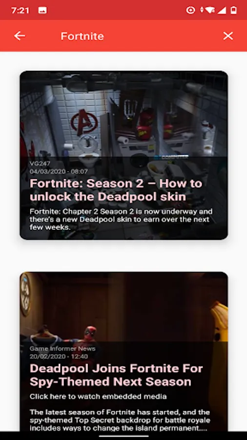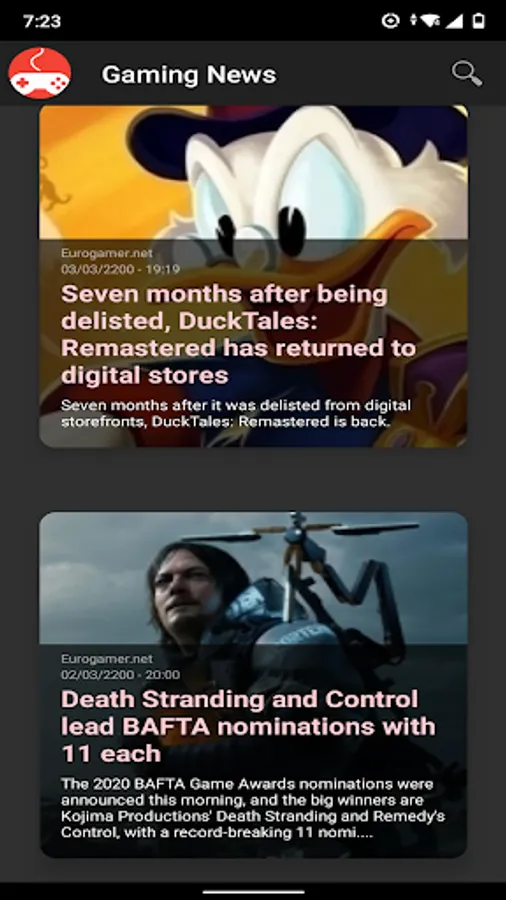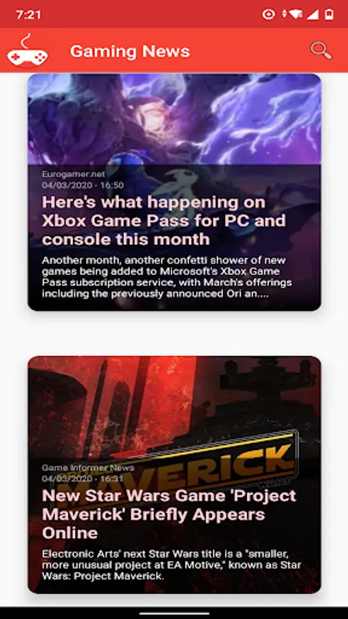 Gaming News fetch a list of news with is thumbnail (if available) and a description, so you can see the most important about details about an article without entering to it. But also, if you want to read more, you can go to the website's news without leaving the app.