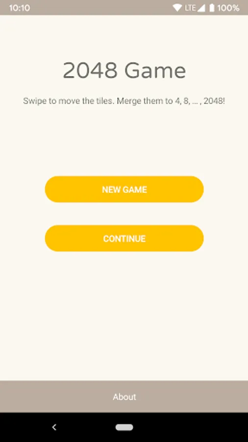 Swipe to move the tiles. Merge the numbers to 4, 8, 16, ... , 2048, you win!