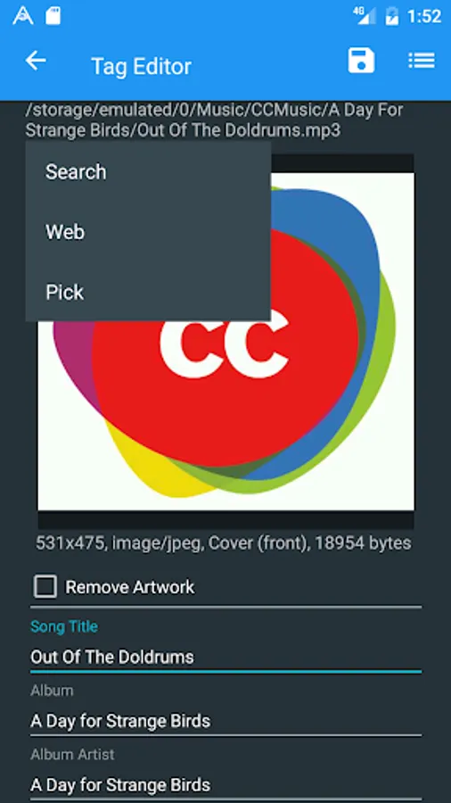 • Select custom album art via targeted search, unlimited web search, or local files (long click album art)