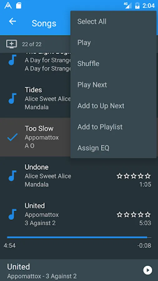 • Dynamic Up Next queue to control playback order, shuffle, rearrange individual songs, save as playlist, etc