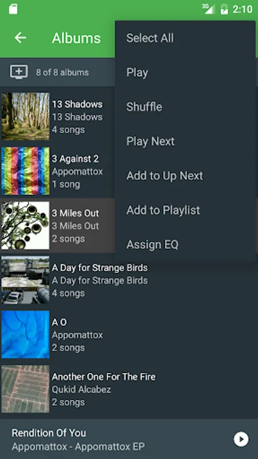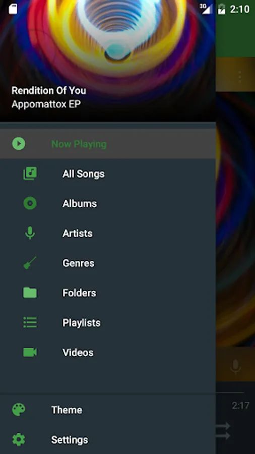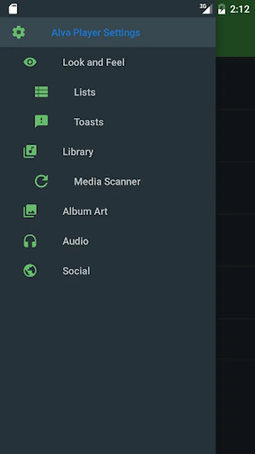 After installing this theme, open the Alvə Player navigation drawer, select Theme, then select Material Green.