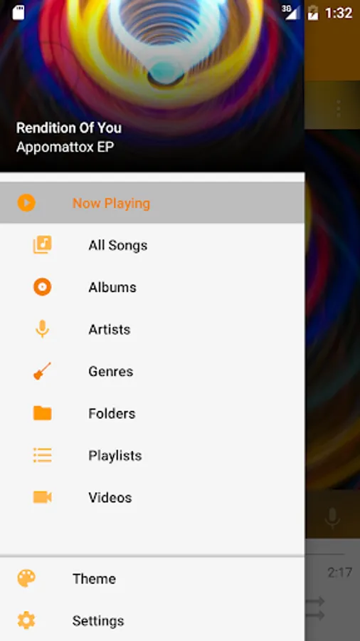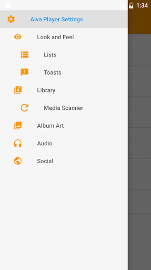 After installing this theme, open the Alvə Player navigation drawer, select Theme, then select Material Orange Light