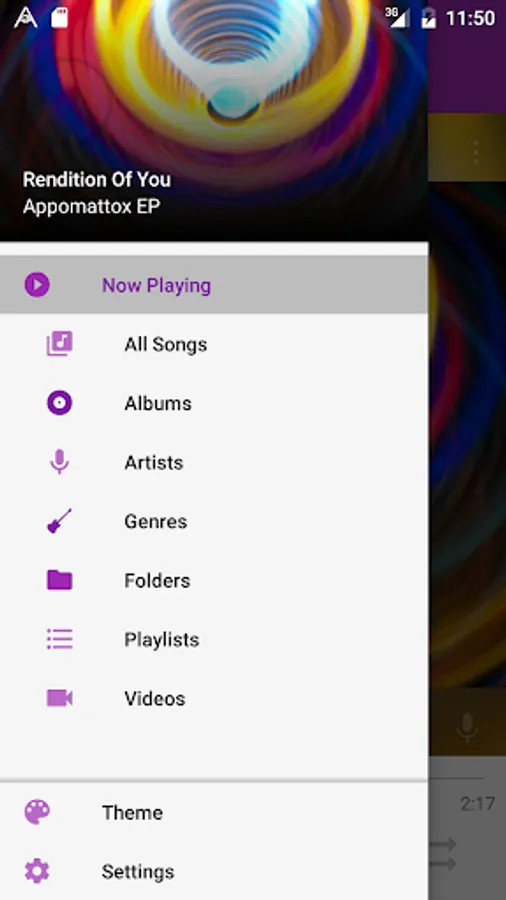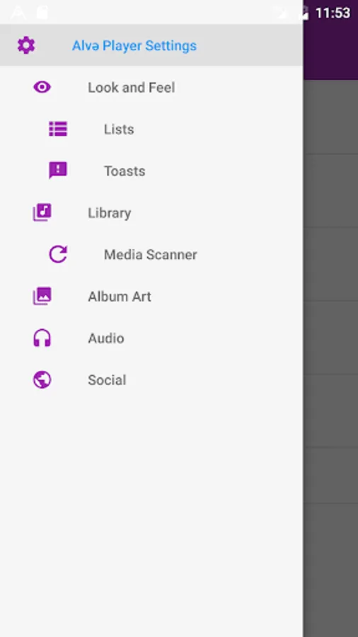 After installing this theme, open the Alvə Player navigation drawer, select Theme, then select Material Purple Light