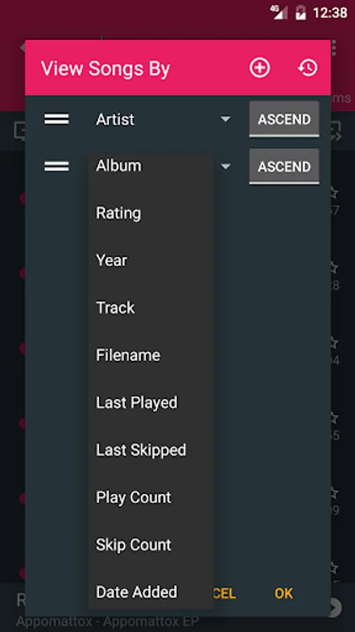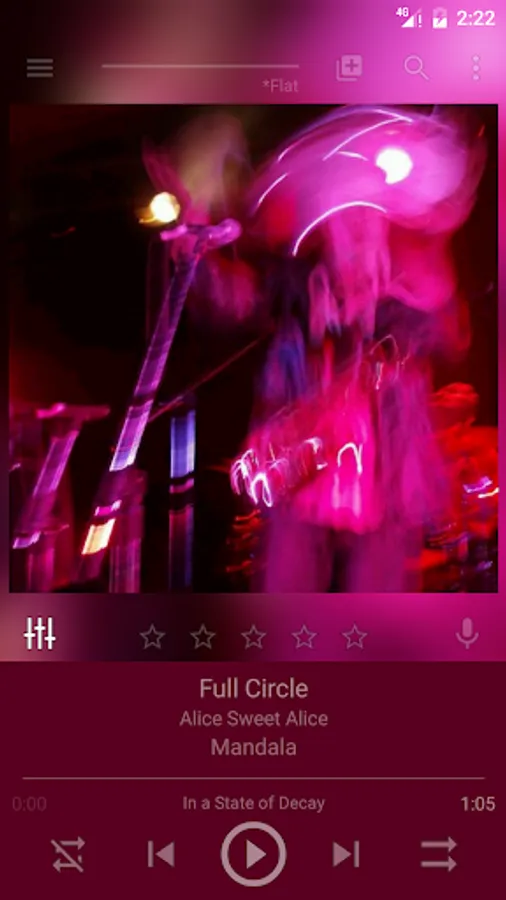 This Alvə Player theme provides pink title bars and widgets, with an amber accent. The backgrounds are dark with white text. The colors for the Now Playing activity are dynamically chosen from the current song's artwork.