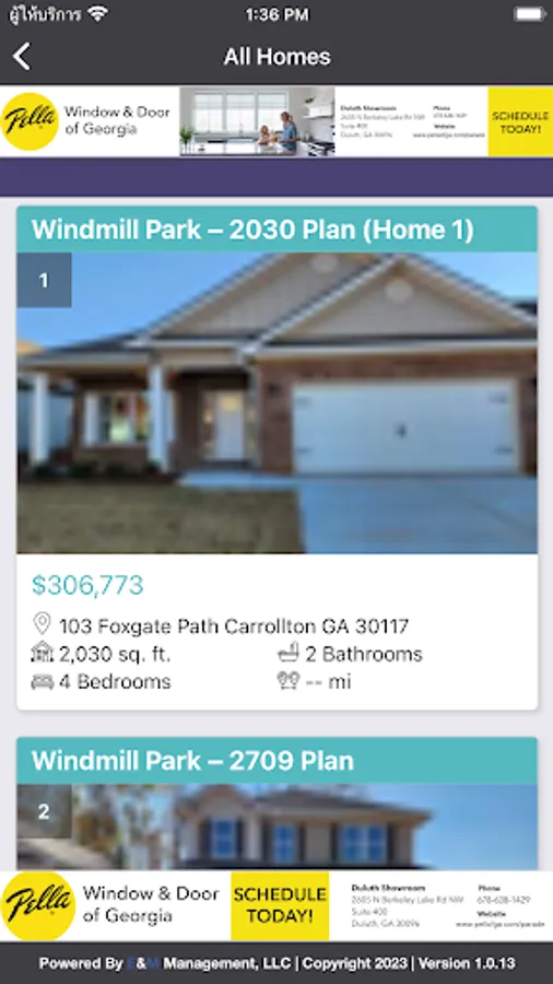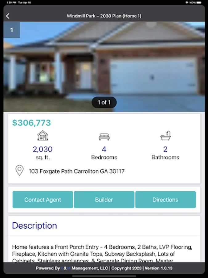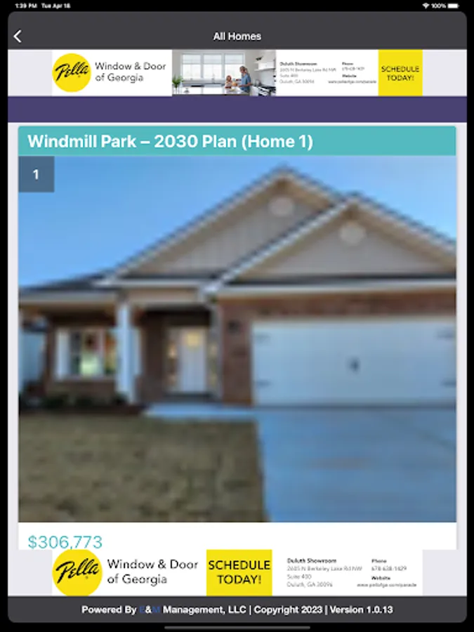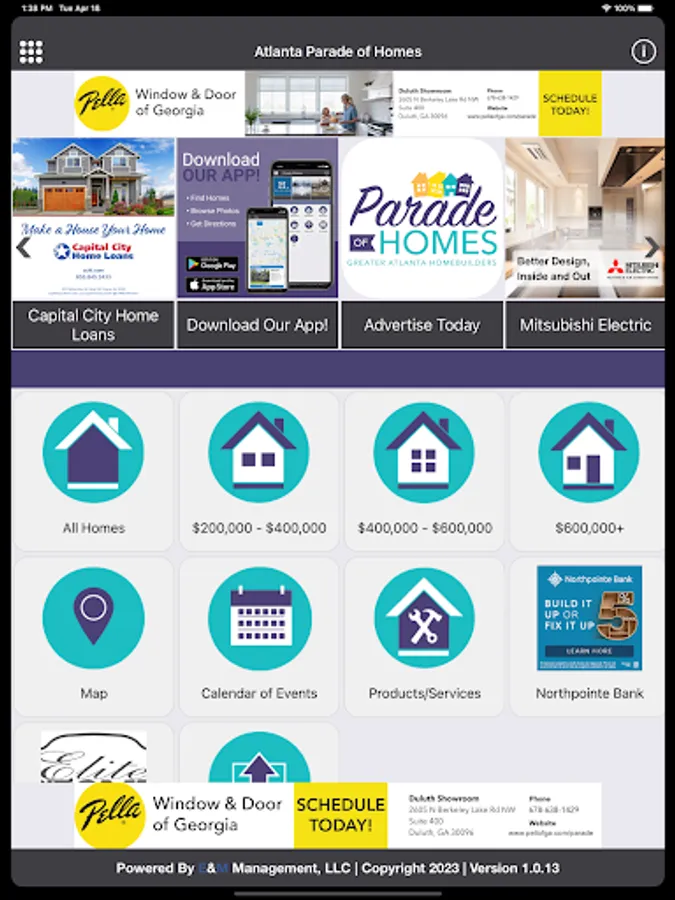 The mobile app features homes, advertisers, and business listings in the home building and home buying industry.