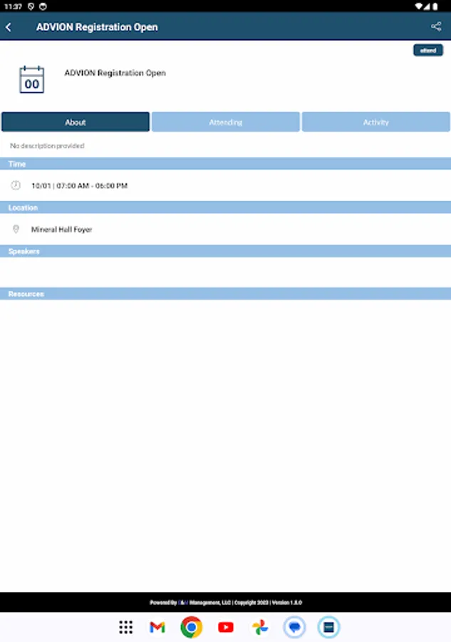 The ADVION Events mobile application gives you agendas, presentations, speaker and sponsor details, attendees, and other resources from your ADVION event in one convenient place.