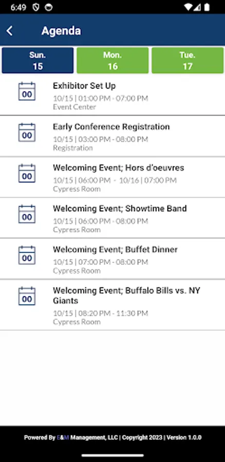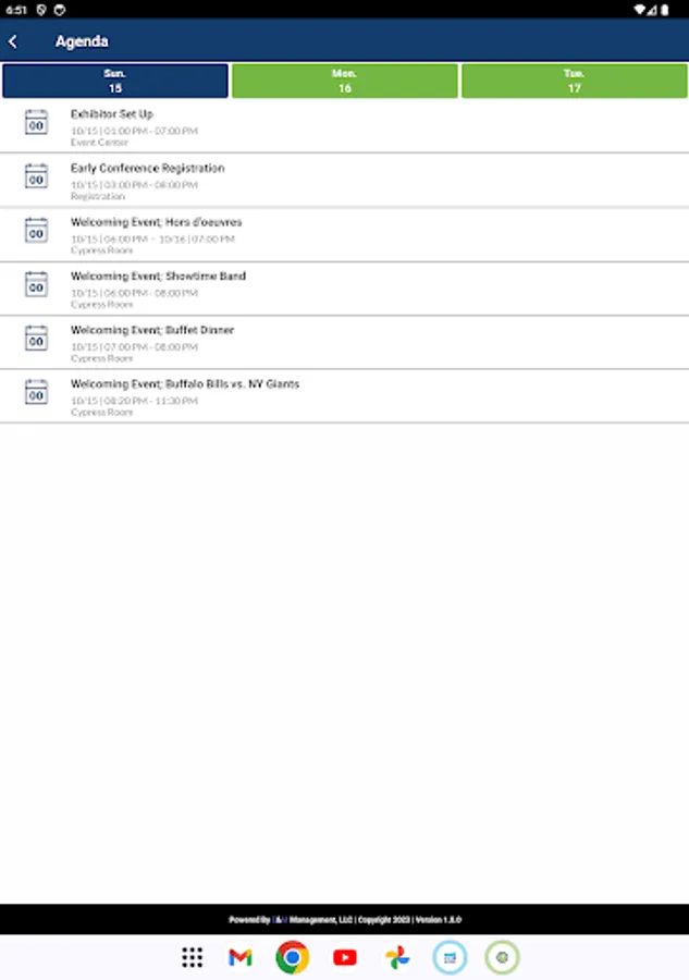 • Agenda: Keep an eye on special events, sessions, and networking opportunities.