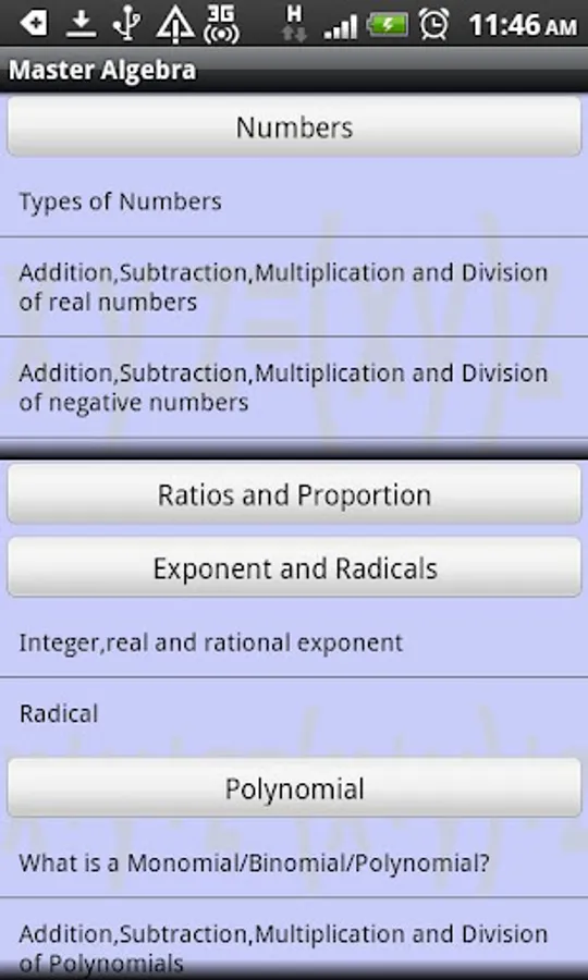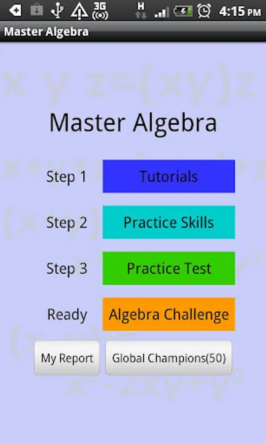 IMathPractice Algebra's 3 steps method of teaching has sections like Tutorial, Practice Skills, Practice Test & Algebra Challenge. Under tutorial it teaches you.