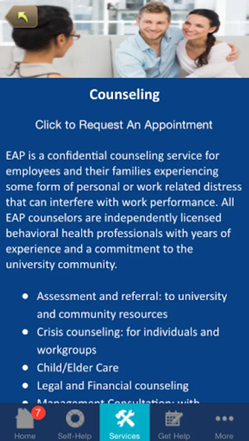 Representing a mobile lifeline, the CAP App reaches students wherever and whenever they may need services. The user-friendly platform allows users of all ages to access an extensive array of self-help content including articles and diagnostic tests. Those users inspired to seek professional counselling can also schedule on-line text or video chat sessions. Bringing resources to you on your terms! Now with upgraded version to support newer phone.
