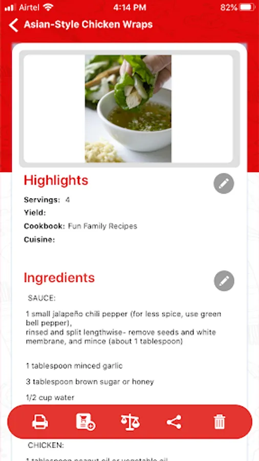 • NEW! Recipe sharing. View a recipe. Use the Share link in the lower right of the app.