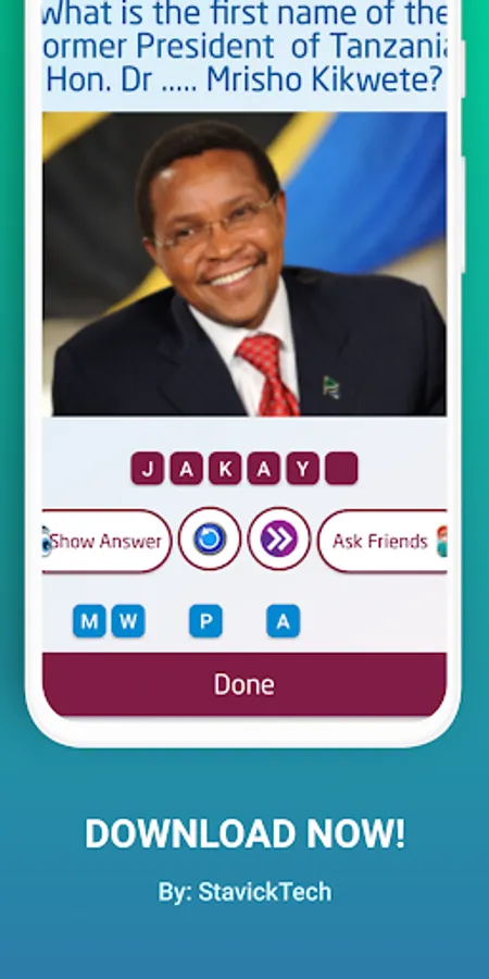 Play while online or offline challenging questions. Tanzanian, East Africs, Africa and world wide in a wide variety of topics ranging from general knowledge, government leaders, sports, Disney movies, action movies, video games, internet and much more.