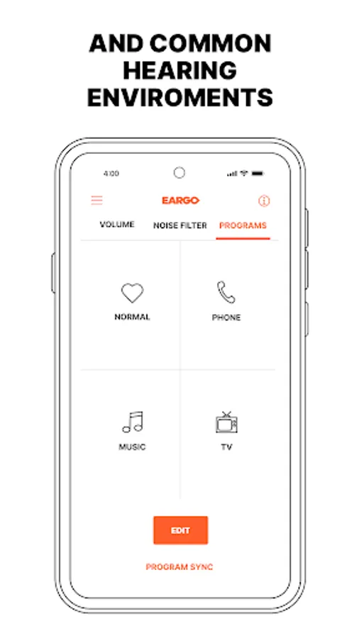 - Make discreet, on-the-go adjustments right from the app to your in-ear hearing devices. Change the program, adjust the volume, mute or unmute, and increase or decrease the Noise Filter for your preferred speech clarity.