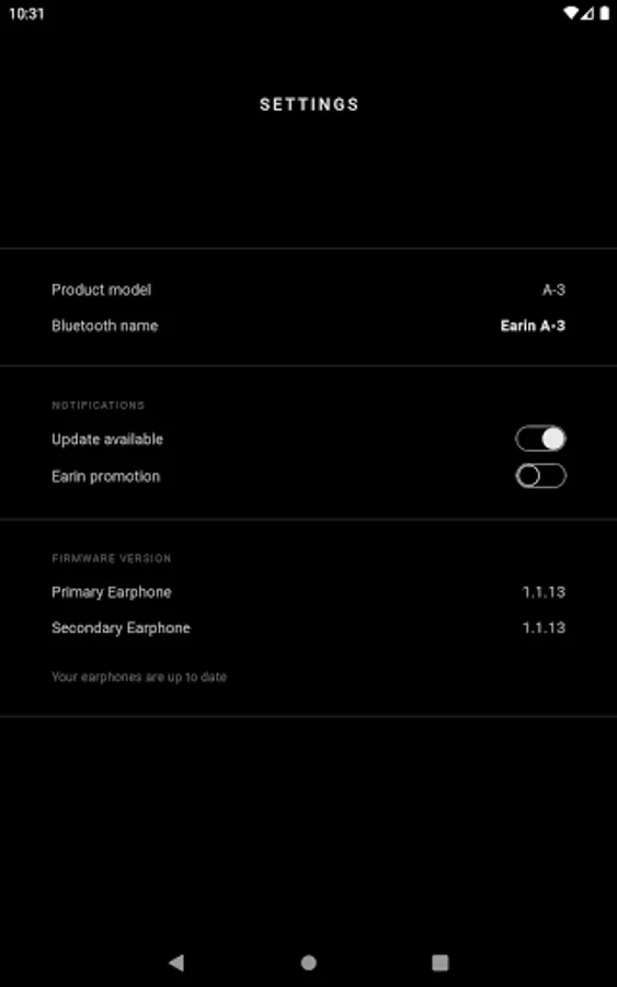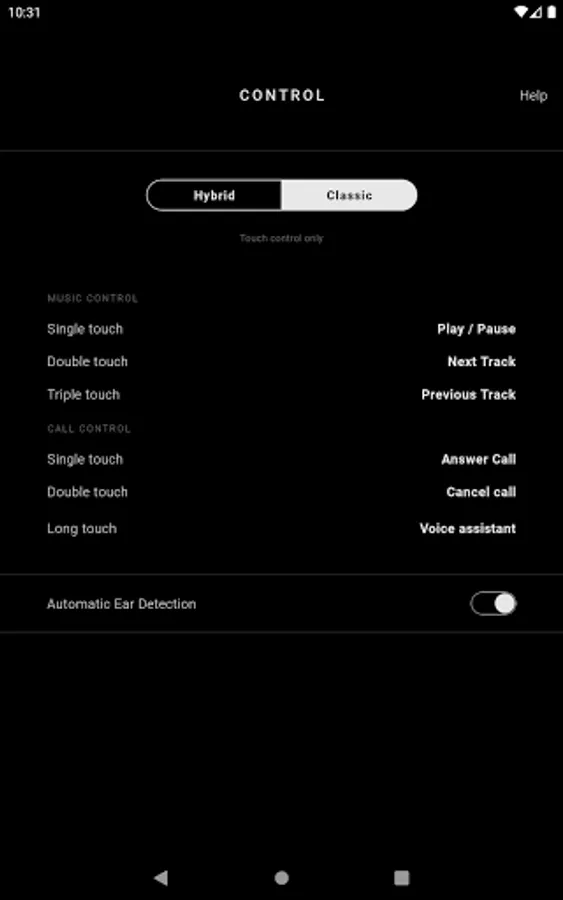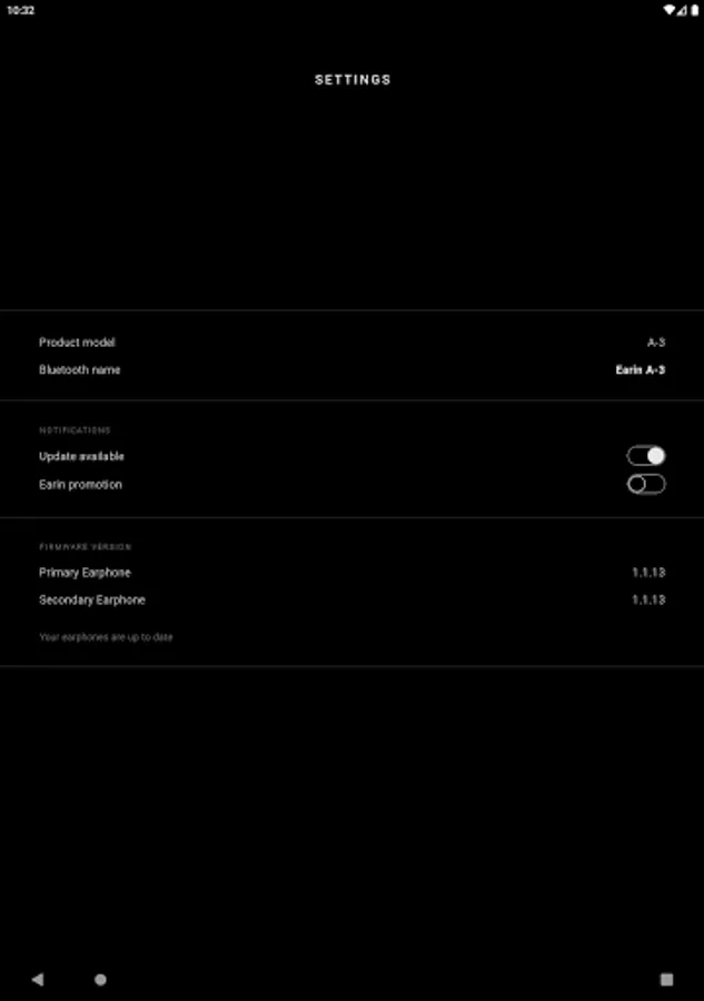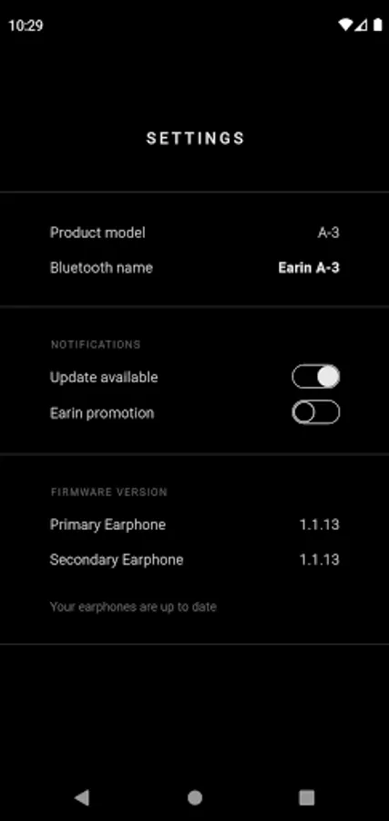 The app allows you to take control of your earbuds. With the app you can check battery status, enable touch control and select between hybrid or advanced control features or update earphone firmware.