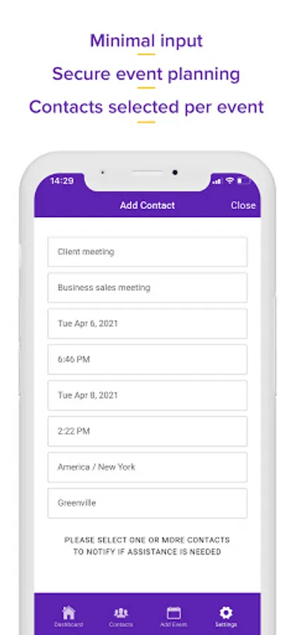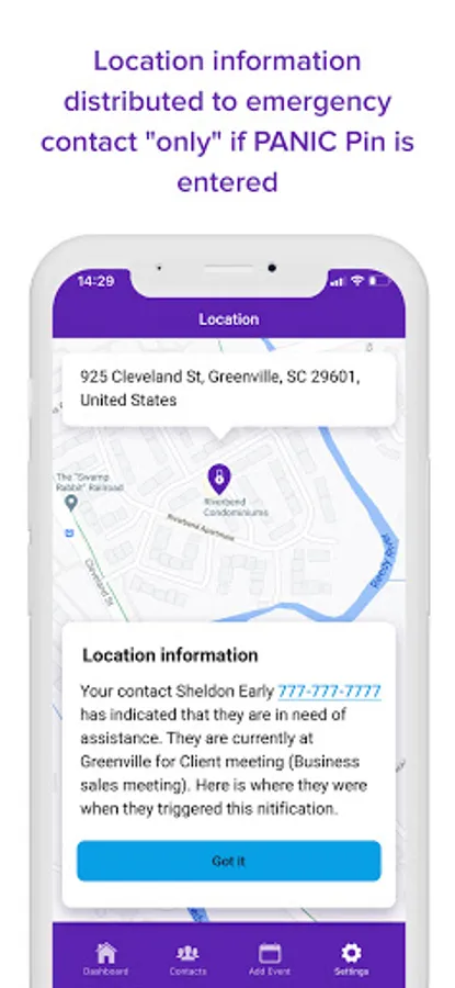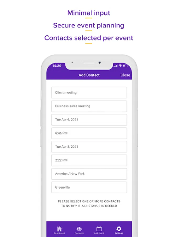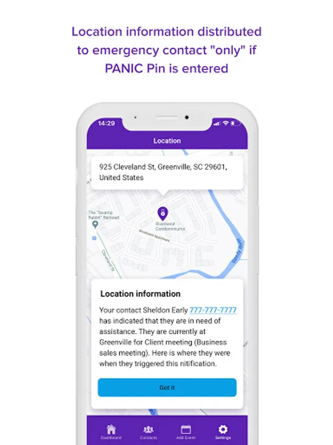 Secure PINs ensures that only you can tell the app if you're okay or if you need assistance. Set two unique four-digit PINs that only you know: one for “I’m okay” and one for “I’m not okay” so that you’re always the one in control of your safety. If someone enters an incorrect PIN, an alert will be triggered and sent to your emergency contact.