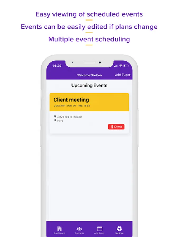 Create a custom event check-in whenever you want some extra security, like when you’re walking home late, going on a date, taking a trip or going somewhere new. During your scheduled event, Location Lockbox will automatically check in with you to see if you’re okay. If you indicate that you’re not okay, or if you don’t respond within 30 minutes of the check-in, your designated emergency contact will receive a text message with your last known location and the description of your event so they can take action and get help.