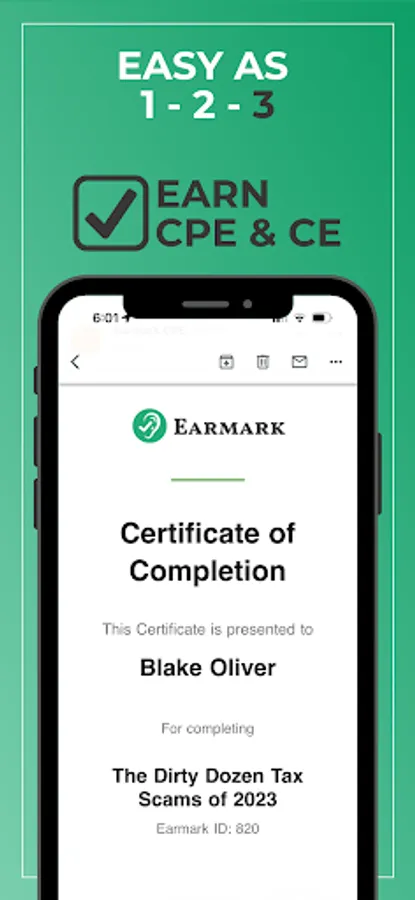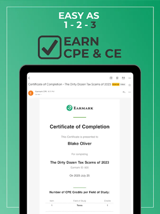 4. Email yourself a CPE certificate. Earmark helps by keeping track of all your CPE earned through the app.