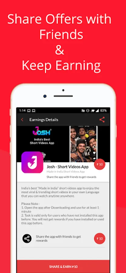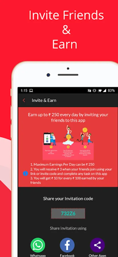 Once the installation is complete 👌 and you have registered as a user, plenty of options to win money will appear on the screen📱.The free cash app allows user to earn cash in multiple ways. Our money-making tool has top-notch refer and earn policies with attractive cash rewards. So spread the word and earn free Paytm money now. You can share the app using Facebook, WhatsApp, text message, and other platforms.