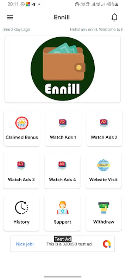 Ennill Earn Real cash App could be a superfast free cash earning app that permits you to earn wallet points are convert to cash-free within the app by enjoying games, doing easy tasks & way more. one in every of the multi-featured Superfast Free cash earning App.