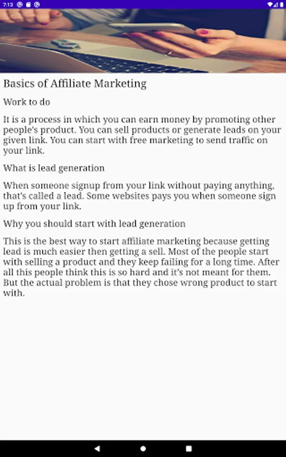 Note - This is a learning app. You can only learn affiliate marketing here. Then you can go to any affiliate network and start working.
