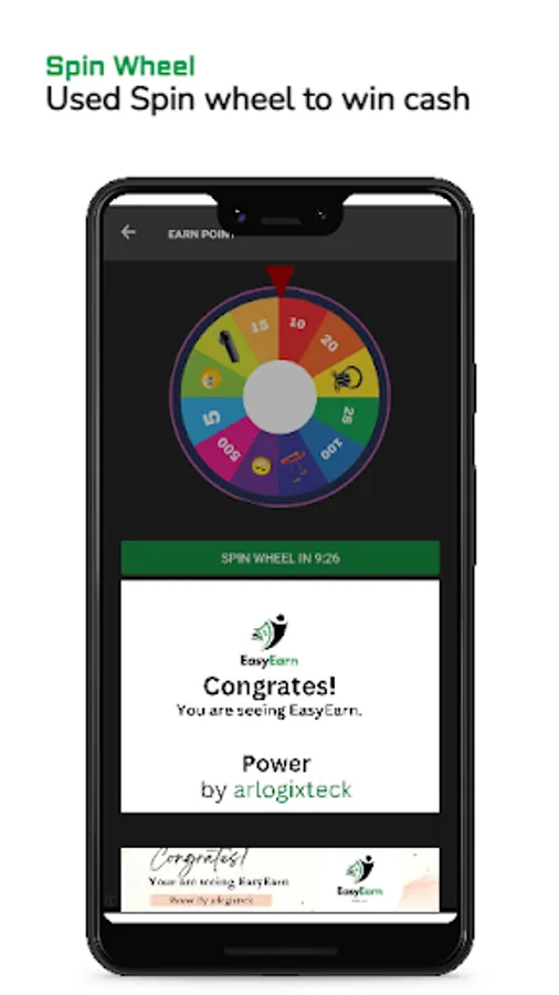 ✔ You can win a Smartphone and a lot of prizes by spinning the wheel.