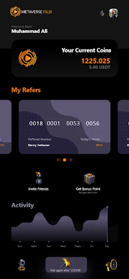 Mining and Referral System: Users can mine "Flix in Metaverse" coins getting app will be helpful for you by inviting others to join the community. This follows the MLM (Multi-level Marketing) business model.