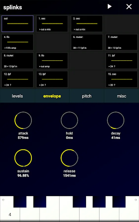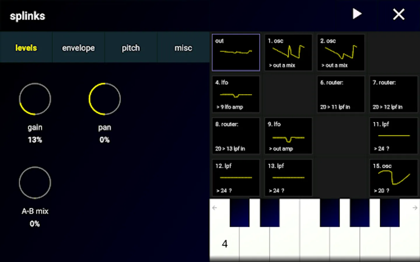 * Play sounds using MIDI or the on-screen virtual keyboard.