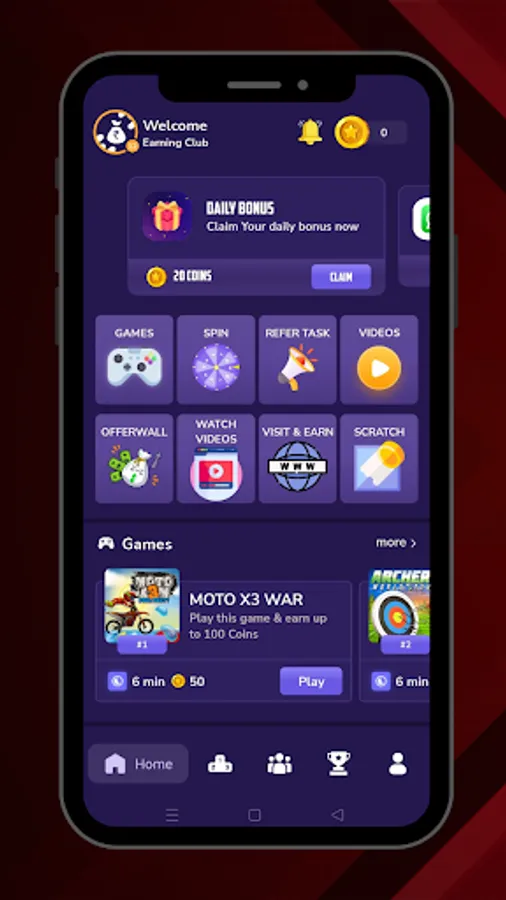 • Referral program: You can earn rewards by referring your friends to Incentivus. When your friends sign up using your referral link, you'll earn rewards for every game they play and task they complete.