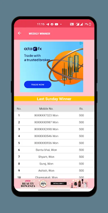 Every Sunday 10 lucky users get free Voucher worth of Rs. 500 or 10$.
