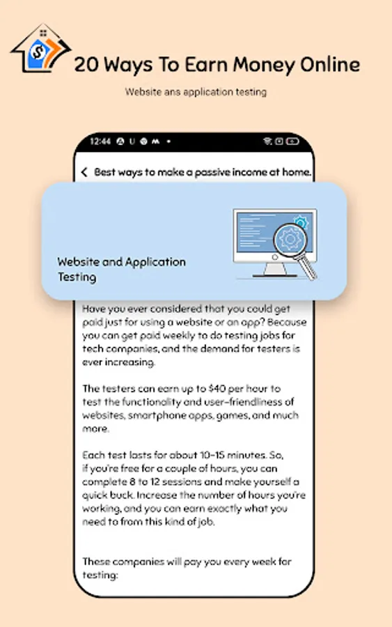 Stop wasting time playing games on your mobile phones. It does not benefit you in any way. Earn money in your free time instead. This app guides through a list of legitimate money-making ways available today.