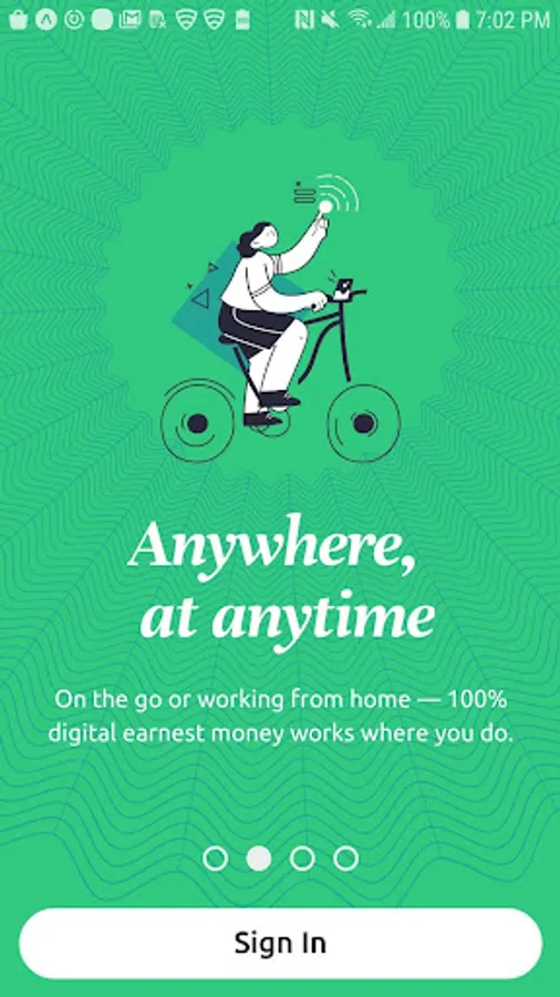 • Anywhere, anytime. On the go or working from home — 100% digital earnest money works where you do.