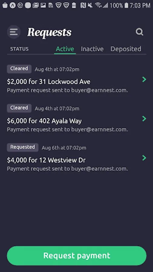 Earnnest is the largest digital earnest money service in the U.S. With the Earnnest app, send digital earnest money requests for your real estate business any time, anywhere.