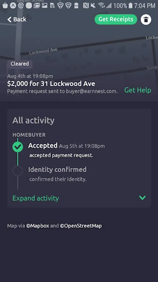 Replace the risk and hassle of personal checks and wire transfers with Earnnest's secure digital earnest money transfers. Our verified network is connected to every bank across the nation and banking-level encryption allows your homebuyer to pay the escrow holder directly. No more delayed paper checks or misplaced receipts — instant notifications and shareable digital receipts in the app keep you updated as transactions progress.