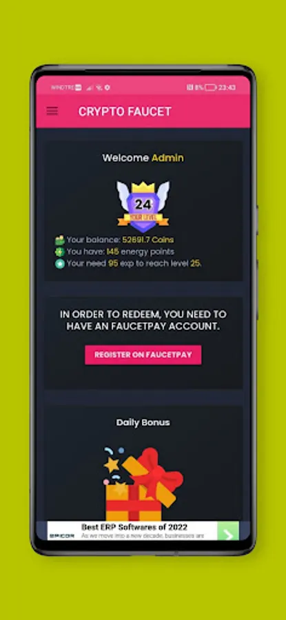 CRYPTO REWARDS FAUCET it is a well organized platform where you can play daily quizzes, daily claim, faucet, games and even spin the wheel!