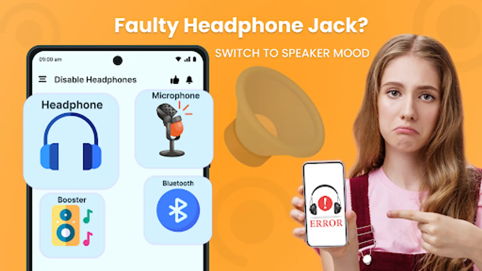 Don't worry about disabling headphones, fix your headphone issues with this app. So, first of all, let's summarize what the disabled headphone and Enable Speaker Mode app brought for you. Disable microphone headphone helps its users to set speaker issues and raise the volume with the Bass booster feature of this enable speaker volume - disable headphone mode.
