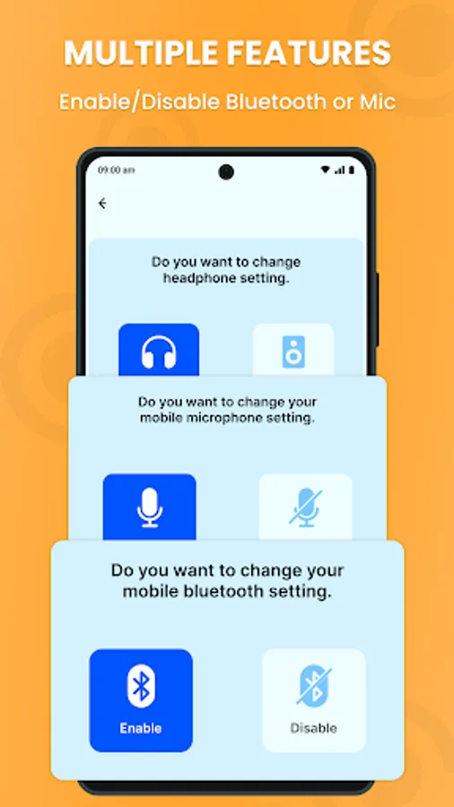 Disable headphone microphone presents to you the component with which you can control the Bluetooth earphones utilizing this Disable Faulty Headset app. You can empower earphones through your cell phone. The component has alluring and straightforward structures to control Bluetooth earphones without any problem.