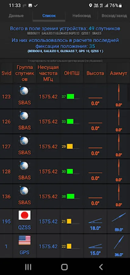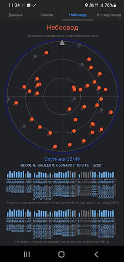 • Carrier-to-noise ratio density of baseband satellites dB-Hz.