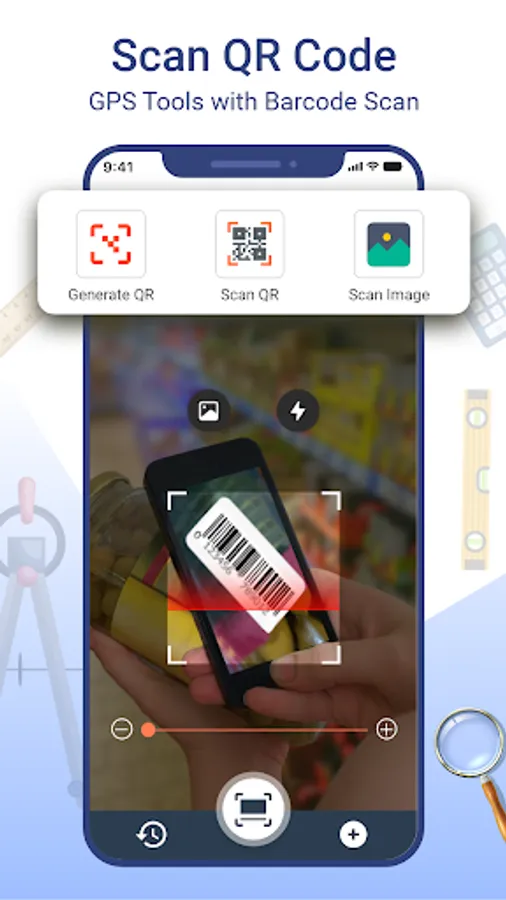 Smart Tools : GPS Tools - Digital Compass - QR Barcode is offering its user a fast scanner for scanning QR code scanner and Barcode scanner . Qr Scanner all sorts of the Qr and Barcodes . The user can also generate Qr code Scanner with QR creator . QR Code Reader Free can read and decode all kinds of QR code and barcode , including contacts, products, URL, Wi-Fi, text, books, E-mail, location, calendar, etc.