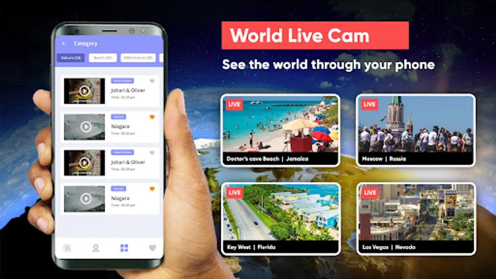 With the Live Camera - Earth Webcam app, you can travel around the world without leaving your room! Get many HD cam views of beaches, mountains, famous resorts, streets, zoos, etc.