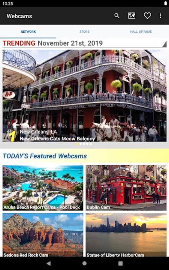 With EarthCam’s Webcams app, you can travel the globe, visiting scenic and landmark destinations via our unique network of live HD streaming video and megapixel snapshot cameras. Subscribe now to watch hundreds of live-streams for just $4.99 per year, and create your own personalized watchlist. Explore the Hall of Fame to enjoy the best image archives submitted by EarthCam.com visitors and share your favorites!