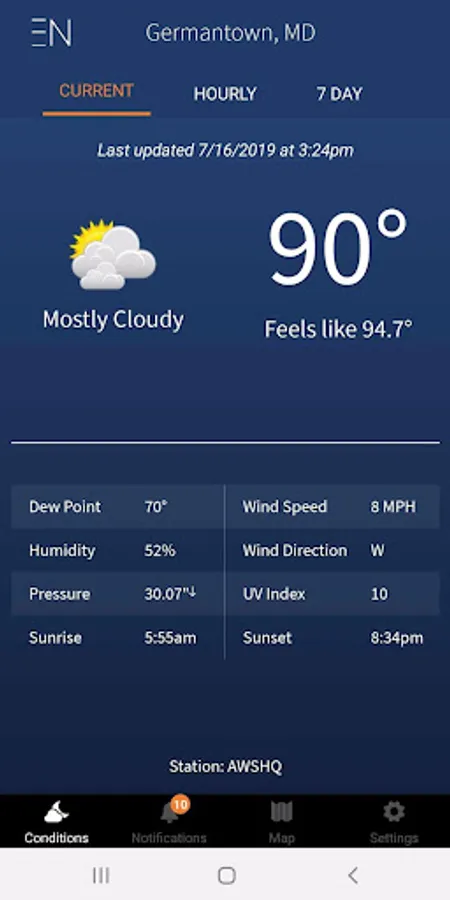 • Real-time conditions including temperature, feels like, wind speed and humidity based on user’s location