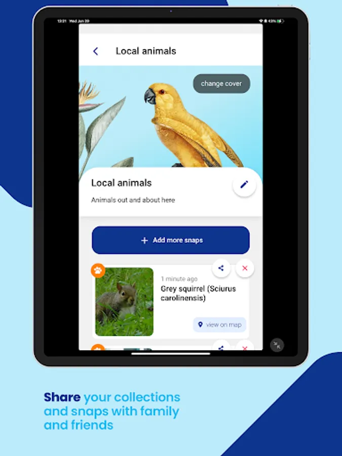 Keep all your discoveries saved in one place and easily access them whenever you want. Create your own library of flowers, highland animals, trees, ocean creatures & more!
