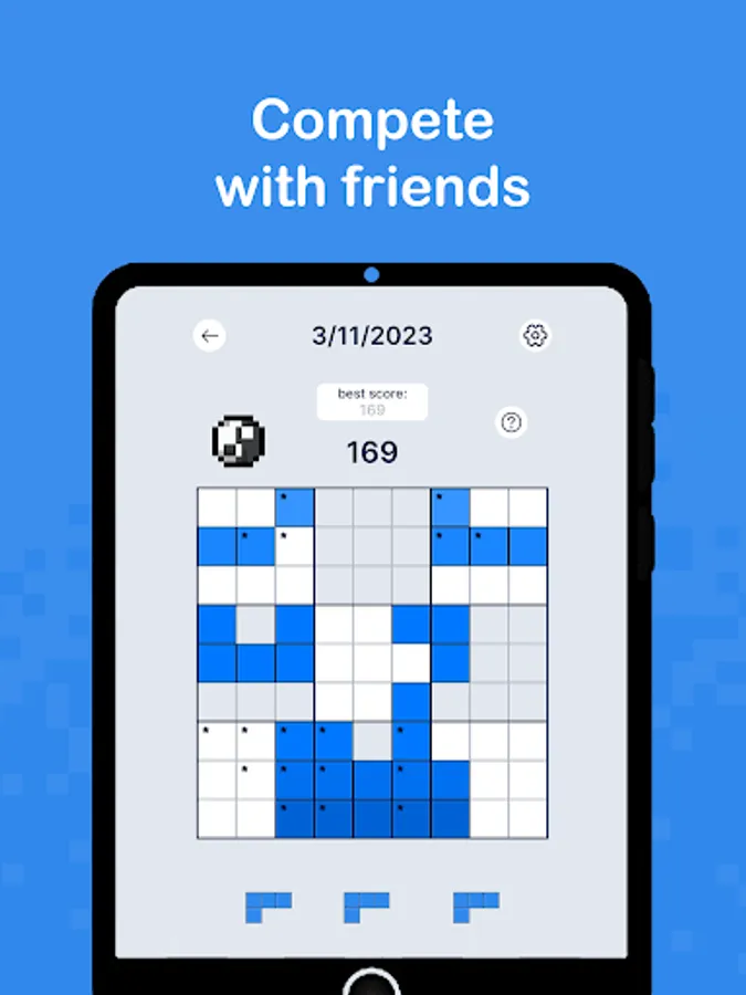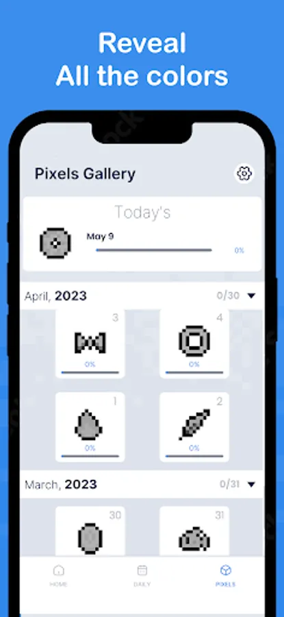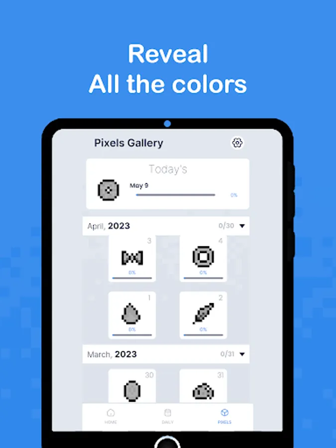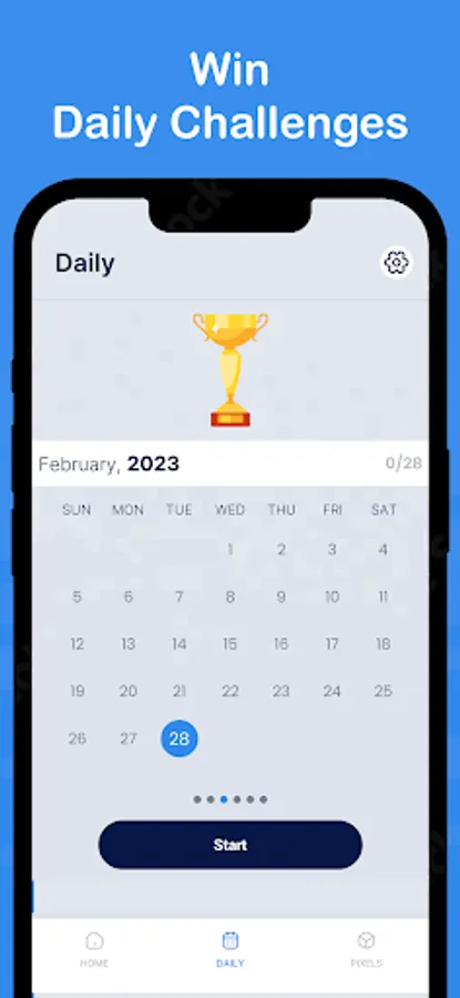 - Complete daily challenges to earn unique trophies and hidden pixel challenges to unlock colorful images.