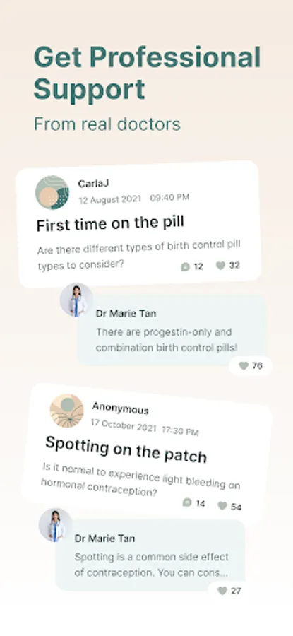 Discuss sensitive and intimate topics relating to women’s health, ask questions anonymously and interact with members of the community to get support.