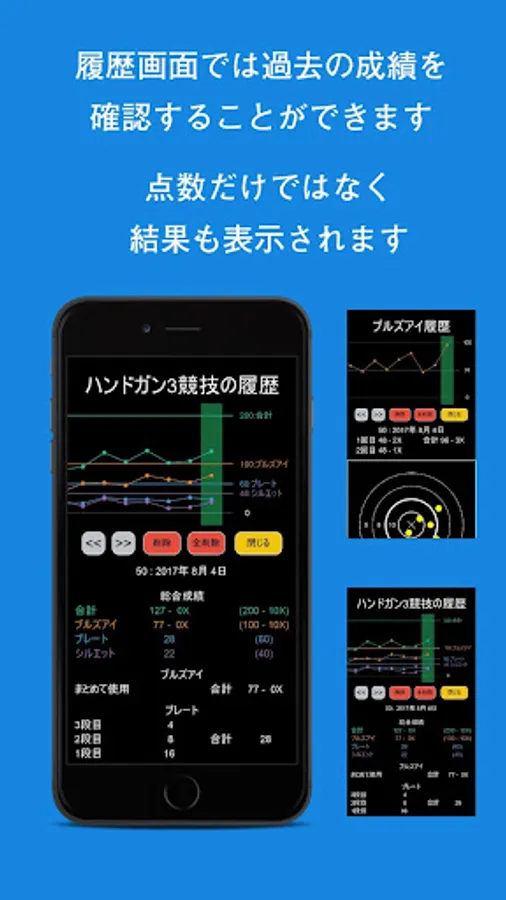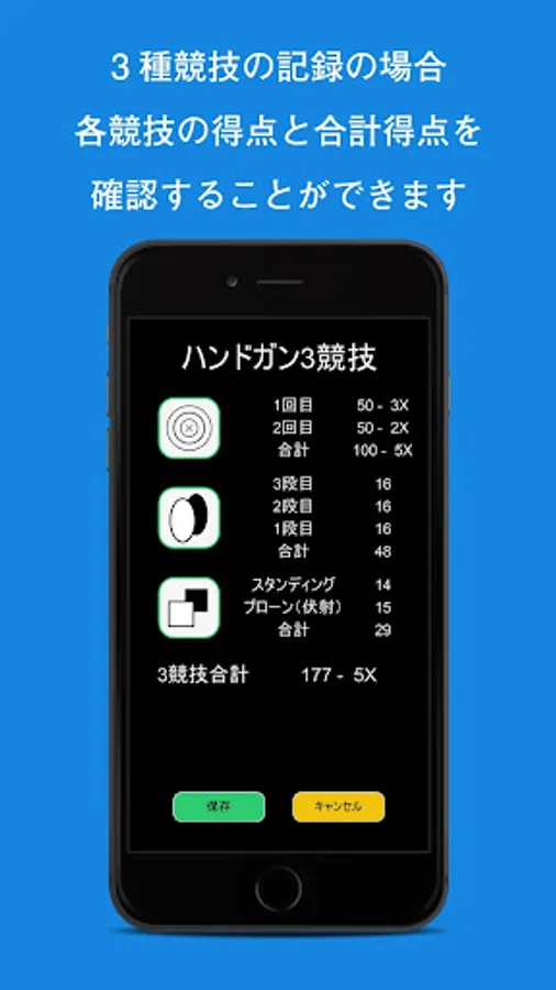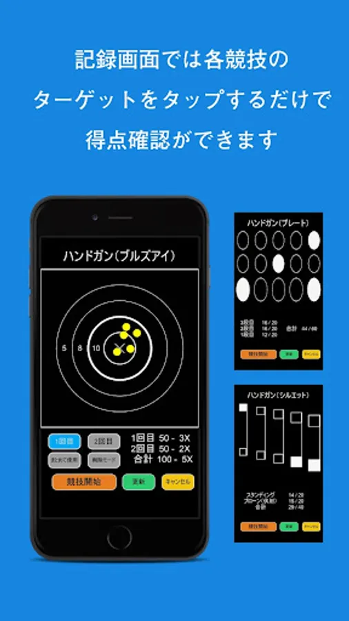 各競技の記録画面では画面をタップするだけで得点計算ができます。